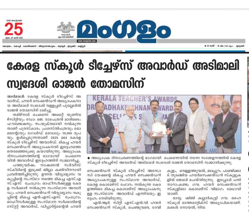 President of All Kerala Private Schools Association: He works tirelessly to promote quality education and support the interests of students, teachers, and school administrators in Kerala.